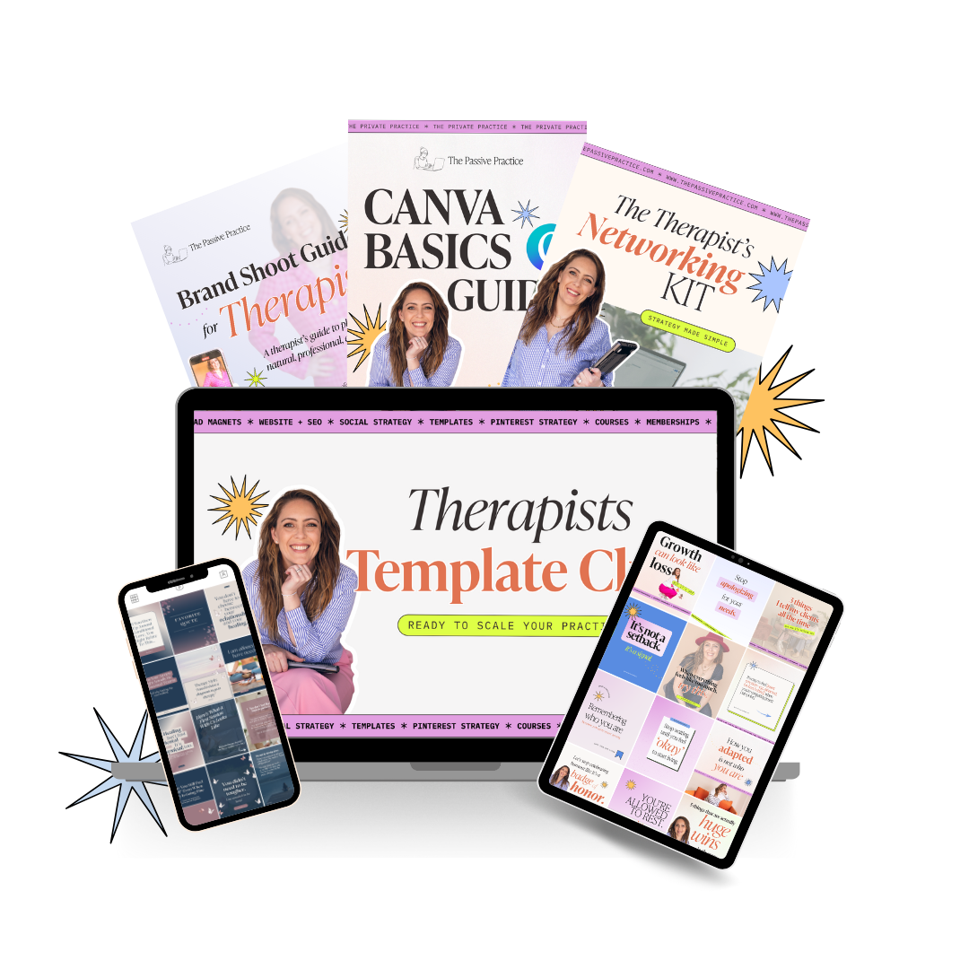 As a special free bonus, members of the Private Practice Club get instant access to the Therapist Template Club. This is a collaboration with The Passive Practice, created by my best friend and marketing guru Amanda Smith.